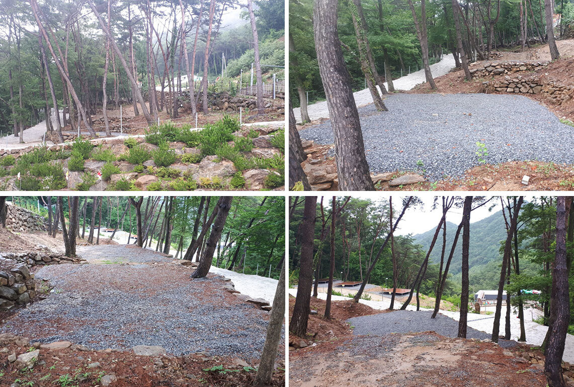 캠핑장 : 계곡데크 20 SET, 계곡돔 4 SET, 오름데크 7SET, 오름돔 9 SET, 하늘돔 6 SET, 소나무숲 10 SET, 오름파쇄석 10 SET