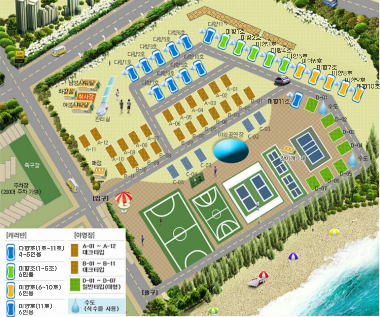 캠핑장 출입은 반드시 출입구를 통해야 하며, 사전 예약하신 지정된 자리에서만 이용 가능합니다.