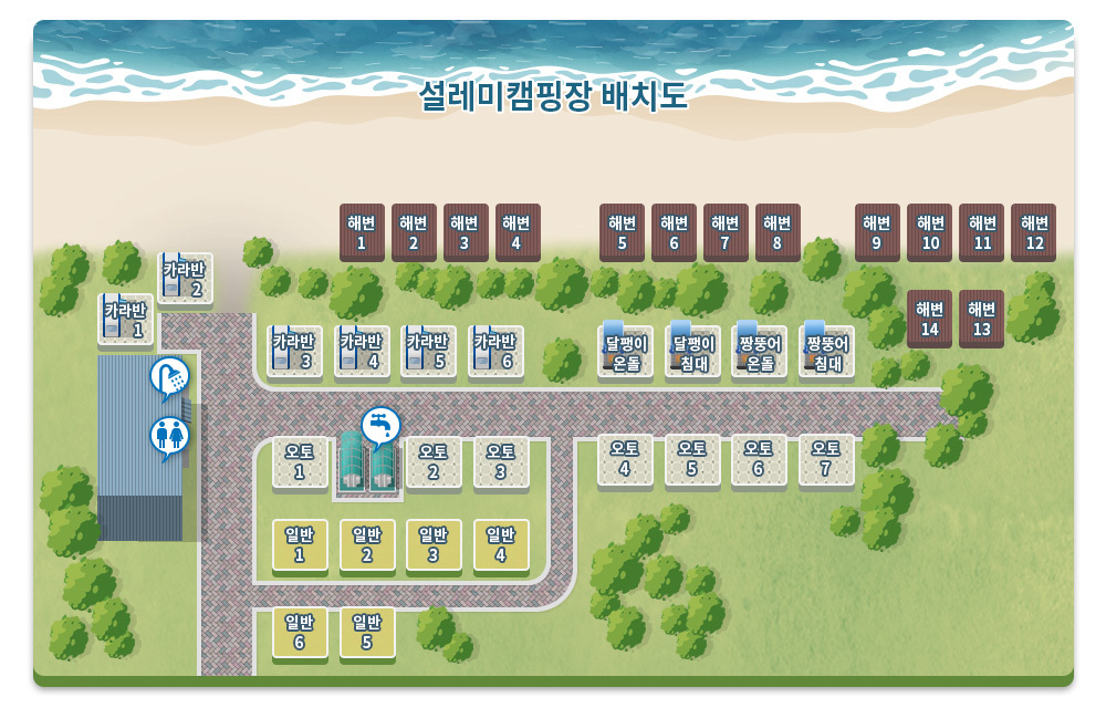 A 설레미캠핑장 예약은 홈페이지 오른쪽 상단에 있는 “실시간예약”을 통해서 예약가능합니다.